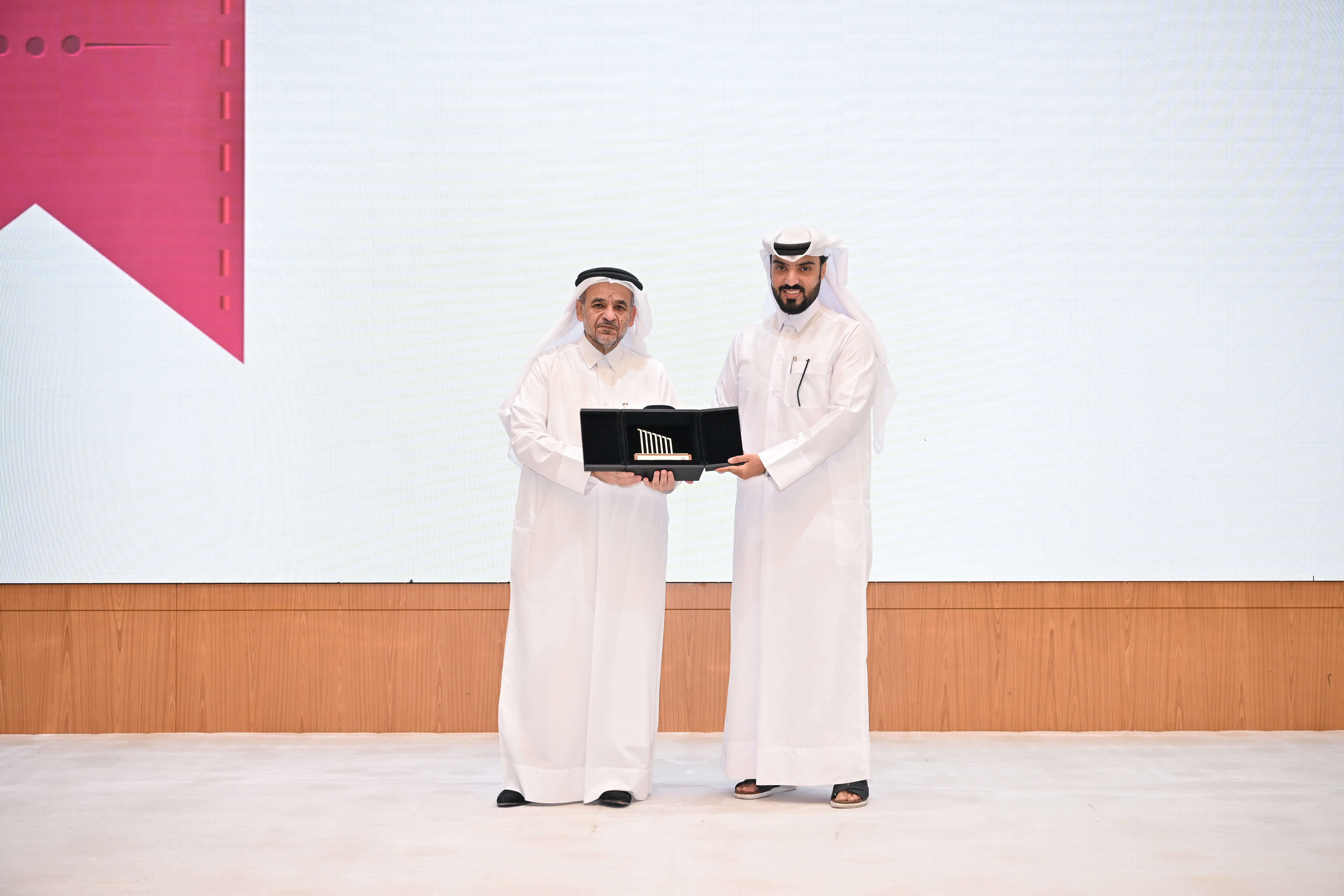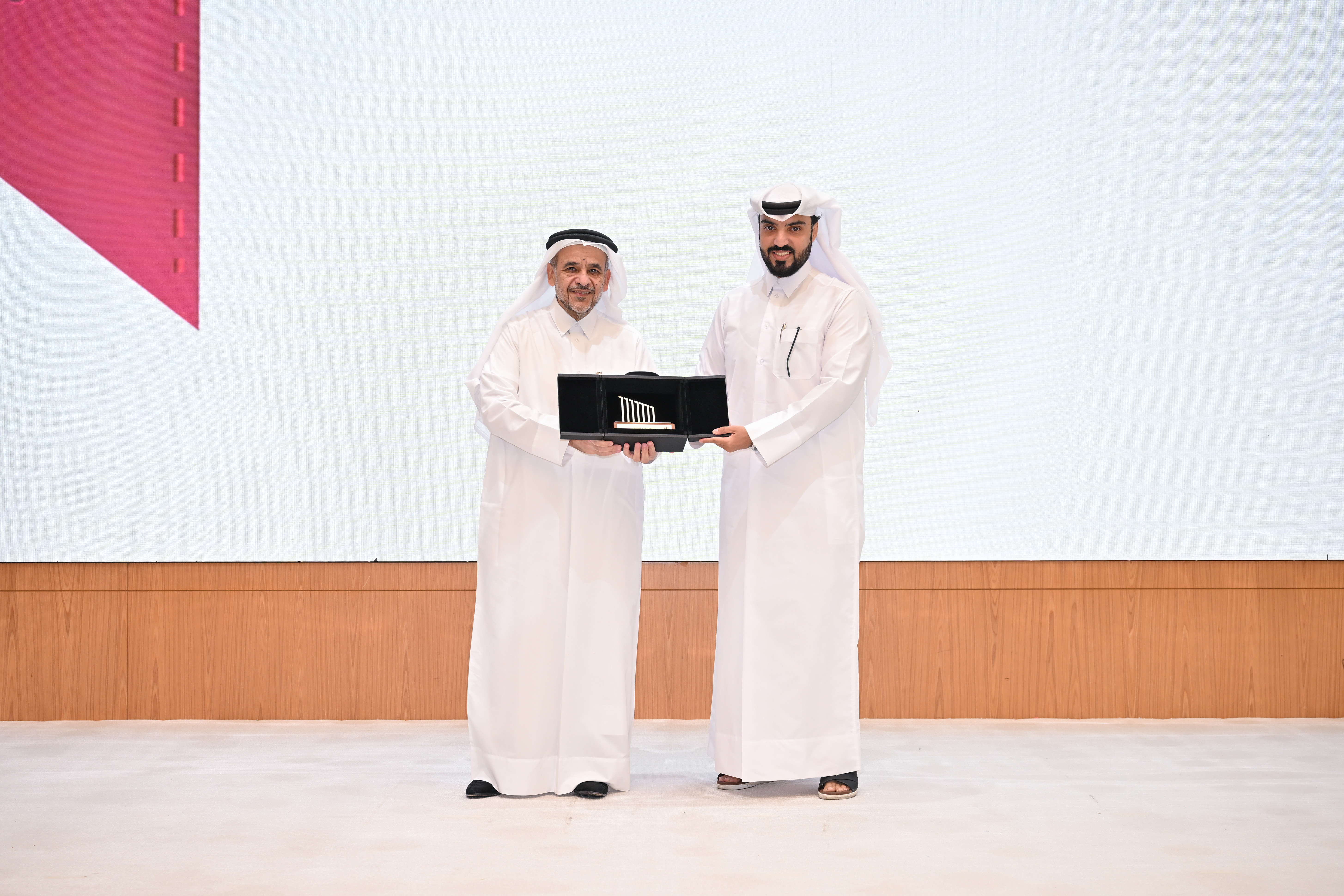 During the ceremony, QLife Pharma was recognized for its active collaboration with Qatar University. The appreciation award was received on behalf of QLife Pharma by Mr. Ali Al Mohanadi, Deputy CEO, and was presented by Dr. Omar Al Ansari, President of Qatar University.